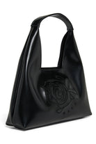 Diamond shoulder bag with logo and embroidered floral pattern. A modern design created to add a distinctive touch to any outfit.