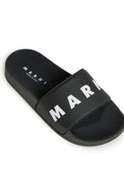 Modern design slide slippers. Institutional logo in contrasting colour on the upper. PVC upper. Polyurethane sole. Made in Italy.