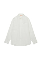 Classic long-sleeved poplin shirt. The essential design is enhanced by the contrasting embroidered institutional logo on the heart side. A versatile and timeless garment.