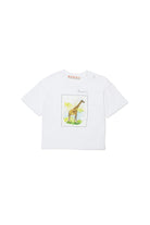 T-shirt with logo and watercolor giraffe print, made of pure cotton. A casual model with a slightly dropped shoulder.