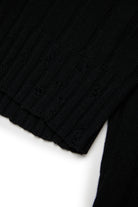 Cropped crew-neck long-sleeved pullover made of a rib knit wool blend. Localized breaks on the neck, sleeves and bottom give it a worn and authentic effect. Perfect for adding character to any look, even for special occasions.