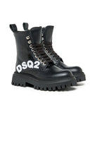 Leather combat boots with DSQ2 logo embroidered in contrasting color on the side. A mix of ruggedness and style perfect for expressing your personality at every step.