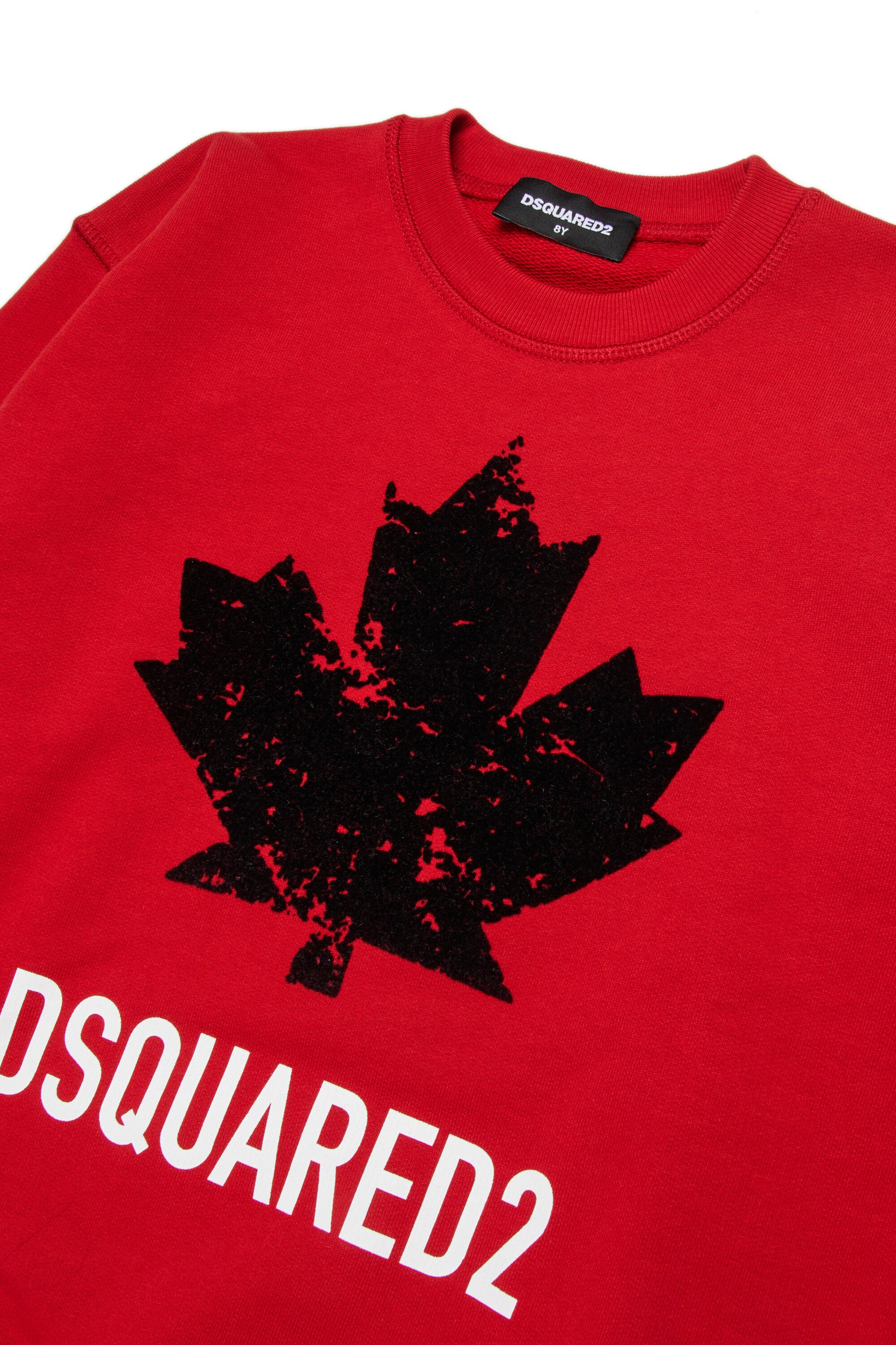 Long-sleeve crewneck sweatshirt with Sport logo where the Canadian Maple Leaf, iconic symbol of the Dsquared2 universe, is reinterpreted with a flocked finish with a ruined effect. Perfect for looks with a contemporary taste.