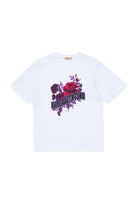 Short-sleeved T-shirt in soft cotton jersey, enhanced by a pixelated-effect floral graphic on the front. The print's irregular finish, reminiscent of an ink drawing, adds a contemporary touch to the look.