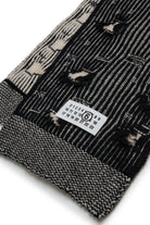 Two-color rib wool scarf, soft and snug. Mending breaks create a worn effect that enhances any look, adding a touch of character and style to the wardrobe.