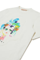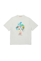 Short-sleeved T-shirt in soft cotton jersey. A garment that knows how to get noticed thanks to the Marni Flower patch embroidered and embellished with sequins.
