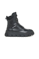 Leather combat boots with chunky sole, laces and logoed side label. Perfect for those who like to express their personality through shoes, with a mix of practicality and character.