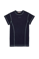 Crew-neck short-sleeved fleece dress. Institutional logo on the front. Overlock seams in color contrast stitching. Made of 100% cotton.