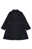 Long jacket with printed logo and zip closure, embellished with front pockets and contrasting stitched details.