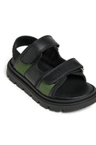Sandals with logo and contrasting details. The design features a double adjustable strap and a lug sole.