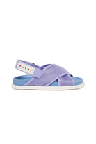 Crossed fussbett sandals. Institutional logo ribbon patch applied to the strap. Strap closure. Mesh and calf leather upper. Thermoplastic rubber sole. Made in Italy.