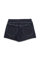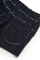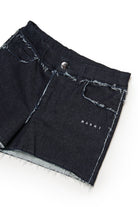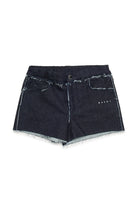 Denim shorts with logo and frayed edge details. A contemporary design created to stand out thanks to the contrast stitching.
