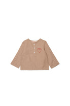 Camisa de manga larga con logo bordado en el pecho y cuello redondo, confeccionada en mezcla de algodón y lino.
