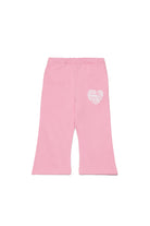 Pantalones de felpa con logo de corazón estampado. El modelo presenta bajo ligeramente acampanado y detalle elástico en la cintura.