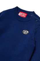 Jersey de cuello redondo de manga larga en mezcla de lana y cachemira. El parche D ovalado en el lado del corazón añade un toque de estilo. Una prenda cálida y suave para la temporada de invierno.