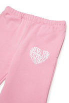 Pantalones de felpa con logo de corazón estampado. El modelo presenta bajo ligeramente acampanado y detalle elástico en la cintura.