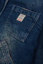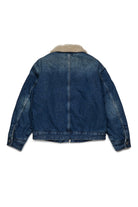 Cazadora vaquera azul oscuro con efecto sucio. El cuello de peluche añade una textura de contraste, mientras que la etiqueta en el bolsillo del lado del corazón aporta un acento distintivo. Una prenda perfecta para los amantes del denim con alma auténtica.