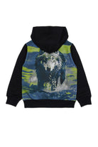Sudadera de manga larga con cremallera y corte extragrande para un look relajado y contemporáneo. El estampado digital con gráficos Wolf en la espalda, caracterizado por un efecto pixelado, confiere a la prenda una estética moderna y llamativa.
