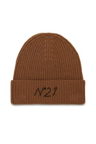 Gorro en tejido canalé de mezcla de lana, con logotipo N°21 bordado en contraste en la vuelta. Suave y cómodo, es el accesorio perfecto para añadir estilo y confort en los días más fríos.