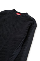 Jersey de manga larga de cuello redondo de algodón. La combinación de sudadera y tejido de canalé crea un original contraste, acentuado por el acabado de corte crudo. El corte extragrande y el efecto used garantizan un look contemporáneo.