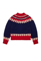 Jersey de manga larga y cuello alto realizado en hilo grueso de lana de fantasía noruega. Prenda cálida y envolvente, se embellece con el parche Dsquared2 aplicado en el bajo.