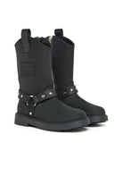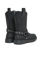 Botas moteras de piel con correa de tachuelas. La etiqueta lateral estampada completa el look, por lo que son perfectas para quienes buscan un par de botas de estilo rockero.