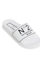Chanclas slip de diseño moderno. N°21 Milano Via Santo Spirito logotipo en contraste de color. Exterior de PVC. Suela de poliuretano. Realizadas en Italia.