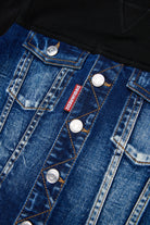 Sudadera de manga larga y cuello redondo con pechera vaquera, que combina la comodidad de la sudadera con el carácter del denim. El diseño híbrido confiere a la prenda el aspecto de una chaqueta, creando un atrevido contraste, perfecto para fiestas y eventos nocturnos.