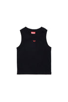 Camiseta sin mangas de 100% algodón con logo estampado en el pecho. Un modelo esencial de corte recto.