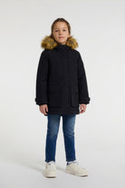 Chaqueta acolchada con capucha y bolsillos, práctica y resistente, ideal para acompañar a los niños en sus aventuras invernales con estilo y comodidad.