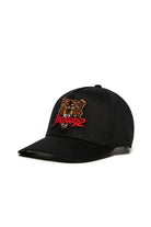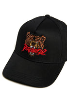 Gorra de béisbol en gabardina con parche de oso en la parte delantera. Una referencia irónica al mundo del terror y a los salvajes bosques canadienses: un detalle que no pasa desapercibido.