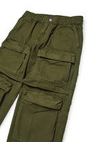 Pantalones cargo de gabardina teñida. Los bolsillos con cierre de velcro añaden un detalle práctico y dinámico, por lo que son ideales para un look informal.