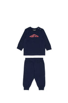 Chándal de punto elástico de algodón. Personalizado con ellogo ICON new generation en contraste de color. Camiseta de manga larga y cuello redondo con práctico cierre de botones en el hombro. Pantalón con ajuste elástico en la cintura y el tobillo. Incluye una bolsa con logo. Una prenda perfecta para un estilo de diario y para ocasiones más informales.