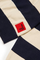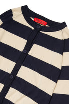 Cárdigan de 100% algodón a rayas con logo aplicado en el bajo. Una prenda icónica con cierre frontal y detalles en contraste.