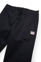 Pantalones formales con logo aplicado en cinta lateral y línea limpia.