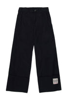 Pantalones con logo aplicado en la pierna, caracterizados por un bajo ancho vuelto y detalles de sastrería.