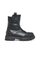 Botas bajas de piel con logotipo institucional en color de contraste en la puntera. Un diseño contemporáneo, perfecto para quienes buscan estilo y comodidad.