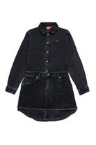 Un vestido camisero de denim negro con falda desmontable que se transforma con un simple gesto. Un vestido moderno y versátil, ideal para looks siempre cambiantes.
