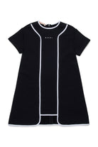 Vestido corto con logo, caracterizado por un corte recto y mangas cortas para un look esencial.
