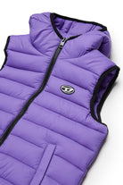 Chaleco acolchado con logotipo estampado, diseño sin mangas y capucha. Una prenda práctica de líneas esenciales, ideal para completar cualquier conjunto.