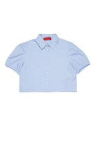 Camisa cropped con logo. Una prenda de línea moderna enriquecida con mangas cortas amplias y detalles de sastrería.