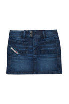 Minifalda vaquera azul oscuro con ligeros matices de color que crean un efecto desgastado. Una prenda perfecta para cualquier ocasión.
