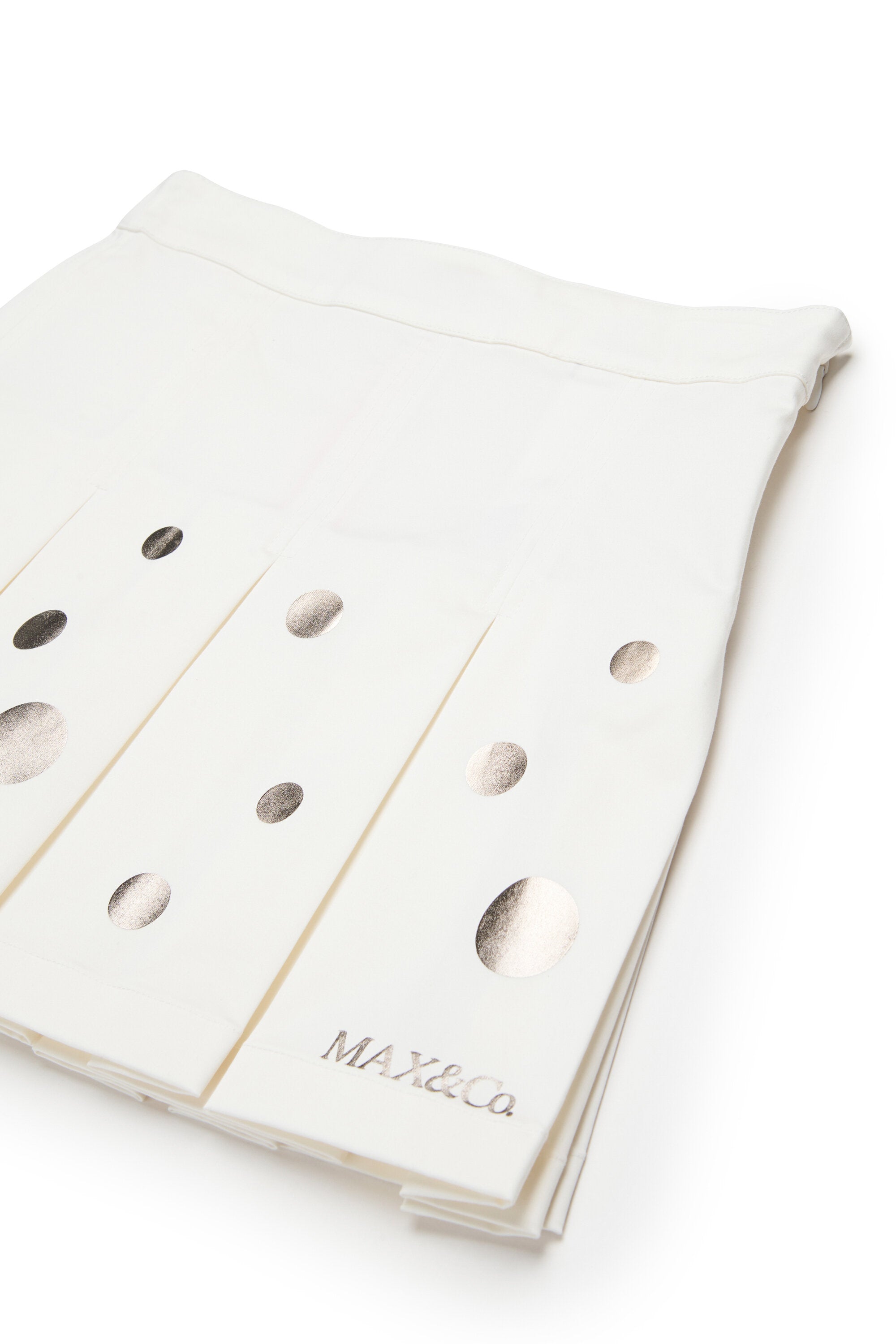 Minifalda con logo y estampado de lunares metalizados. Modelo plisado de diseño dinámico, ideal para completar looks divertidos.