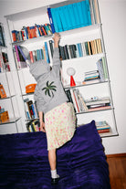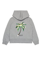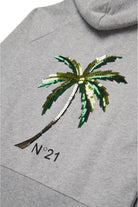 Sudadera de manga larga con capucha. Presenta una palmera con lentejuelas en la espalda acompañada del logotipo institucional N°21. Etiqueta N°21 insertada en uno de los bolsillos delanteros. Confección de canalé en puños y dobladillo. Realizada en 100% algodón.