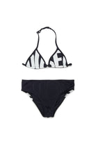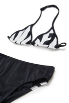 Bikini con logo en contraste y diseño triangular. El top presenta el logo en contraste en toda la superficie frontal.