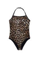 Bañador entero con estampado animal. Modelo moderno con escote halter y bordes en contraste.