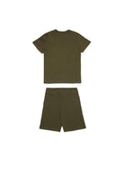 Conjunto compuesto por camiseta de manga corta con cuello redondo y logo D Diesel en la parte delantera y bermudas hasta la rodilla en punto de algodón.