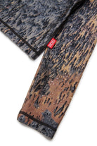 Camiseta ajustada de manga larga realizada en tejido elastizado con efecto brillante. El estampado digital allover Acid Rain, enriquecido con la aplicación de tachuelas transparentes y brillantes, aporta un efecto gota brillante y único.
