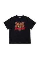 Camiseta de suave jersey de algodón con mangas cortas, parche del Oso bordado y logotipo de Dsquared2. Un guiño irónico al mundo del terror y referencias a los salvajes bosques canadienses, un detalle que no pasa desapercibido.