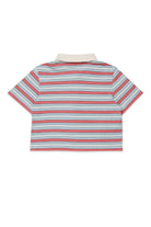 Polo de 100% algodón con logo bordado en el pecho y motivo de rayas multicolor.
